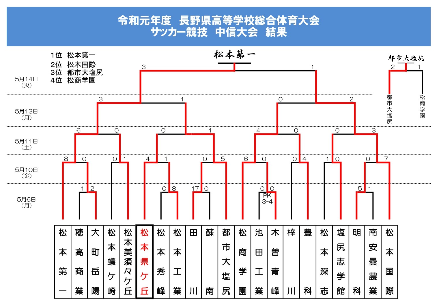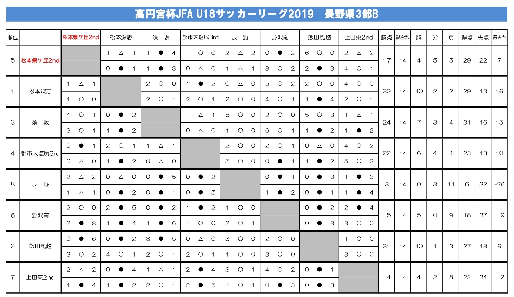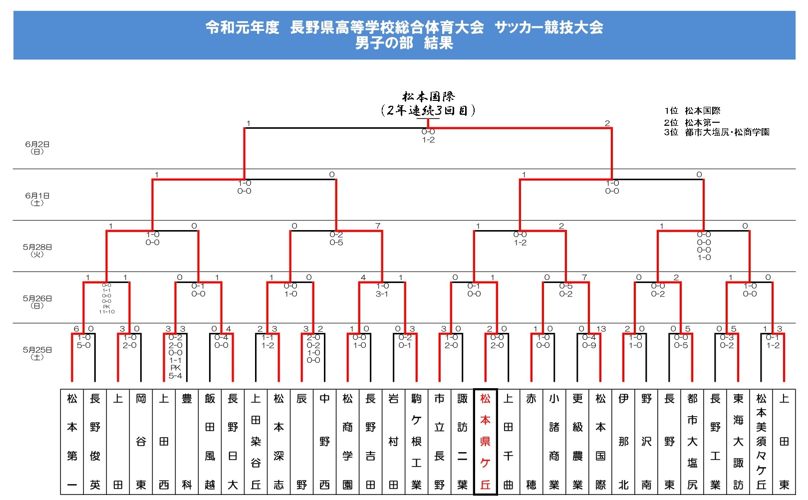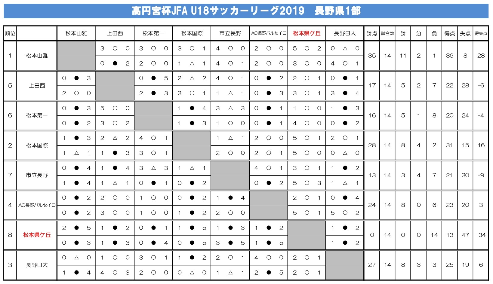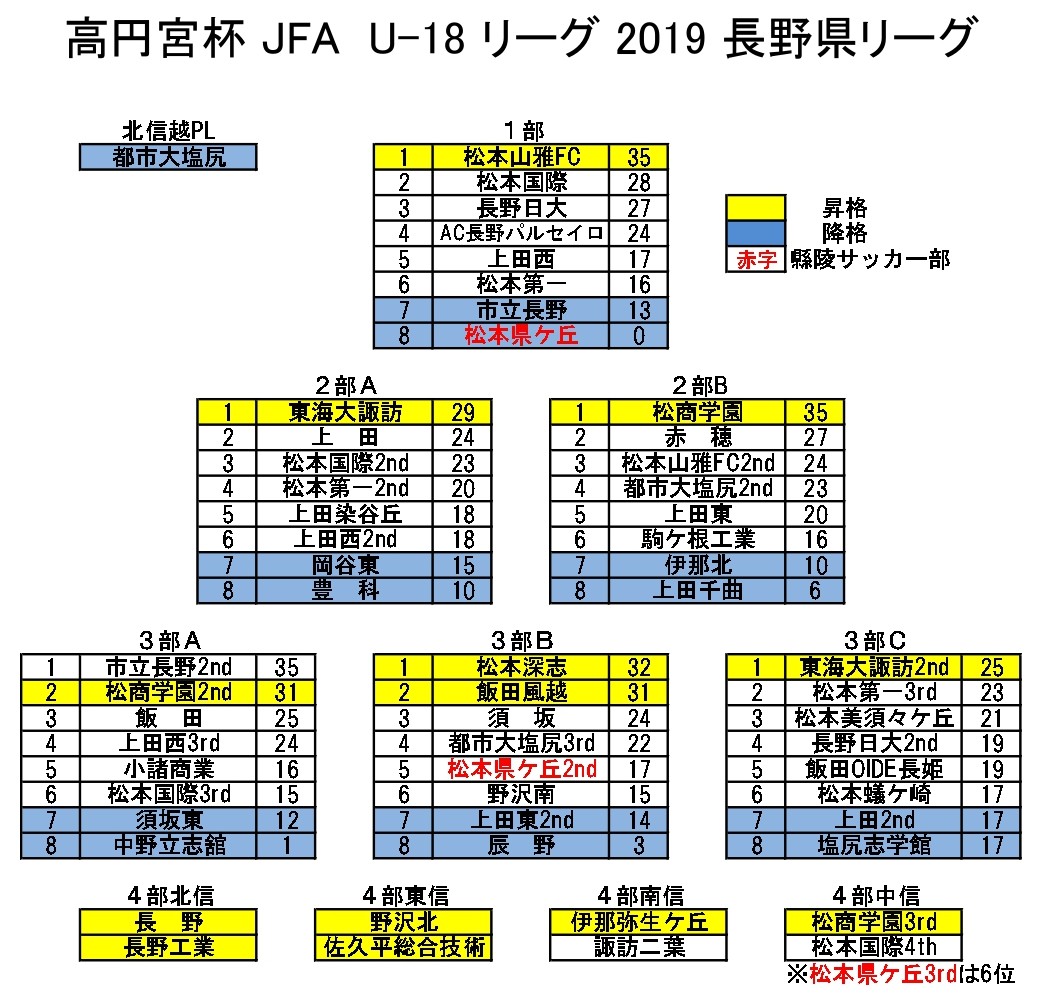 R元年度(2019年度)をプレイバック!【縣陵サッカーHISTORY】 2026.03.21 〇新人戦 中信大会:ベスト8〇高校総体 中信大会:ベスト8 県大会:ベスト8〇高円宮杯U18サッカーリーグ1st:1部8位(降格) 2nd:2部(5位) 3rd:4部中信(6位)〇選手権長野県大会:3回戦 R8年度 リーグ戦の日程詳細が決定!H13年度(2001年度)をプレイバック!【縣陵サッカーHISTORY】